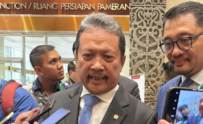 海事与渔业部长萨克蒂•瓦赫尤•特伦戈诺在雅加达国际会议中心举行的2025年国际可持续发展论坛活动间隙回答媒体记者的提问。