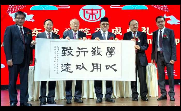 典礼仪式上,十位热心支持中文教育的捐资人共同剪彩。印尼驻中国大使周浩黎主持签碑仪式,崇棉教育基金会理事长苏用发与董事长陈鹤秋共同为东坡学院揭牌。