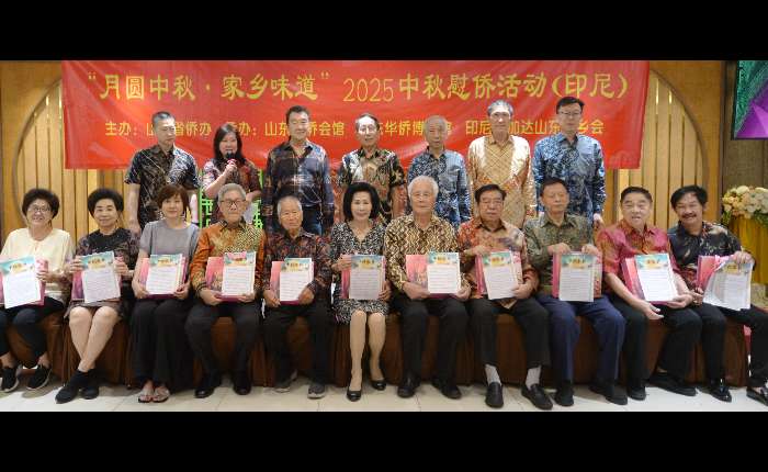 【本报周孙毅报道】10月12日,由山东省人民政府侨务办公室主办,山东省华侨会馆、山东省华侨博物馆及雅加达山东同乡会承办的“月圆中秋·家乡味道”——2025中秋慰侨活动,在雅加达Petojo中央酒家隆重举行。