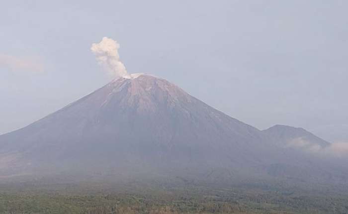 “印尼西部时间清晨05点53分,塞梅鲁火山发生喷发,观测到喷发柱高度约达峰顶以上600米,即海拔4276米。”塞梅鲁火山观测站官员利斯万托(Liswanto)在卢马姜收到的书面报告中表示。
