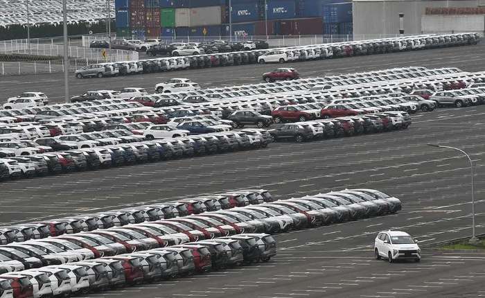 位于西爪哇省勿加西县的Bojongmangu工厂停放许多新车。
