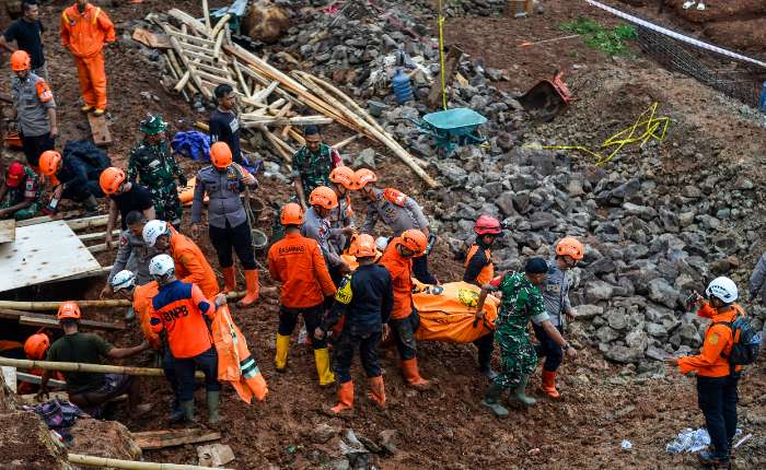 西爪哇省双木丹县山体滑坡遇难者遗体疏散