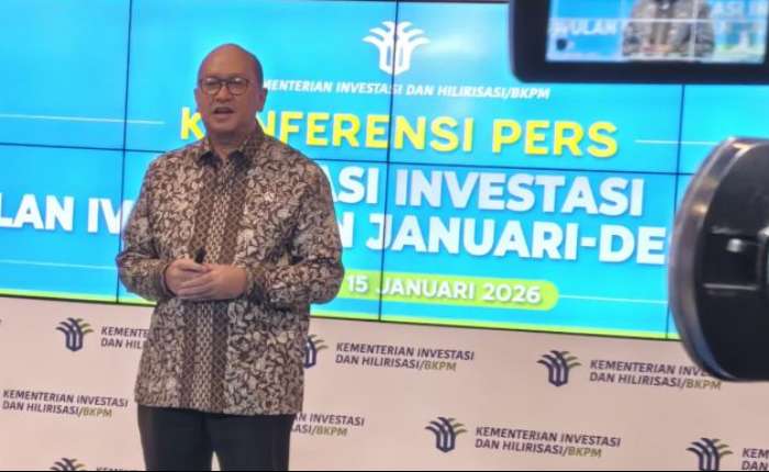 1月15日,在雅加达,投资与下游产业部长、投资统筹机构(BKPM)主任罗山·鲁斯拉尼出席2025年全年投资实现情况新闻发布会。