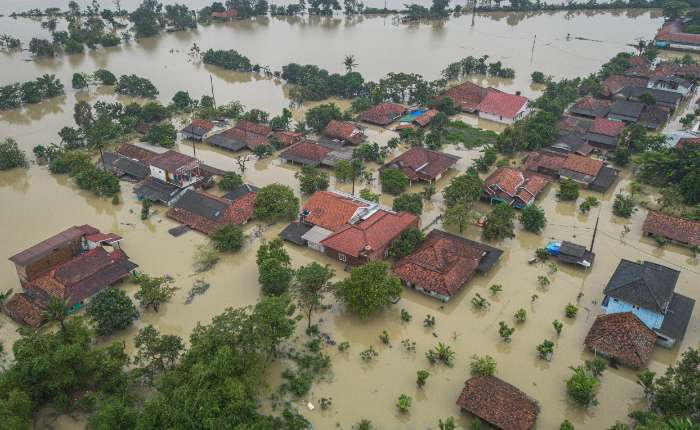 周四(1月22日),航拍画面显示洪水淹没了西爪哇省加拉横(Karawang)县Telukjambe镇Karangligar村的居民区。根据加拉横县政府的数据,在洪水进入第五天之际,仍有五个地区的815栋房屋被淹,1033户家庭受到影响。