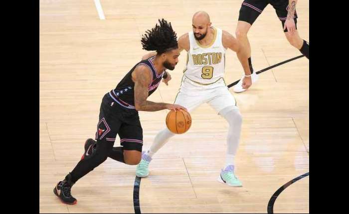 进入第四节比赛,双方继续紧咬比分缠斗,持续拉锯至凯尔特人105-106仅落后1分。布泽利斯三分命中,德里克-怀特上篮得分,武切维奇内线得分,布朗抛射命中加罚不中。史密斯扣篮不中,布朗一条龙上篮追到111-111。赫尔特还剩0.2秒精彩三分准绝杀,普里查德超远空接三分不中,最终凯尔特人惜败公牛。