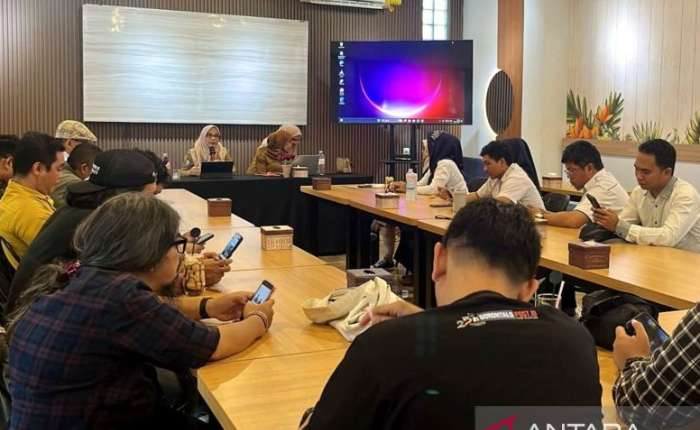哥伦打洛省通讯和信息局代理局长丝丽.瓦尤妮.马托纳(Sri Wahyuni Matona)与各媒体领导层举行会议,讨论哥伦打洛省政府出版物方面的合作事宜。
