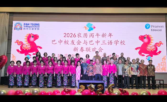 林凤英主席在致辞中,代表巴中校友会向现场所有人致以诚挚美好的新春祝福。她回顾了过去一年的发展历程,同时展望新岁,寄望大家时刻牢记并践行“乐观、进取、合作、奉献”的校训。林凤英强调,巴中始终致力于培养三语人才,重视学生品德教育,倡导“百善孝为先”,教导学生尊敬长辈、感恩付出——这既是美德之本,更是做人做事的根基。愿同学们在新的一年里心有所悦、学有所成、马到成功。