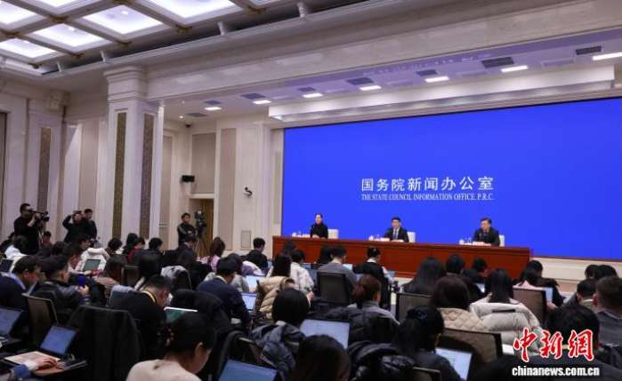 3月5日,中国国务院新闻办公室在北京举行吹风会,请《政府工作报告》起草组负责人、国务院研究室主任沈丹阳,《政府工作报告》起草组成员、国务院研究室副主任陈昌盛解读《政府工作报告》,并答记者问。 中新社记者 杨可佳 摄