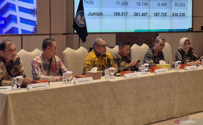 2026年SNPMB主席Eduart Wolok(左三)于 周二(3月31日)在雅加达举行的新闻发布会上。