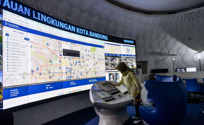 2026年4月10日,西爪哇省万隆市政厅指挥中心一名政府雇员正在监控闭路电视屏幕。万隆市政府正式规定,国家民事公务员每逢周五实行一天居家办公,以节约能源并推动新型工作文化。