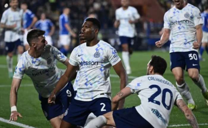 第58分钟,国米前场左路定位球机会,恰尔汗奥卢主罚精准开到禁区后点,邓弗里斯抢点头槌破门!国米3-2反超比分。