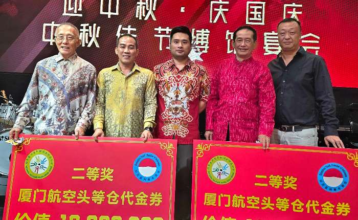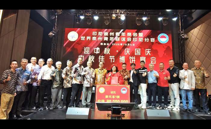 【本报周孙毅报道】印尼泉州青年商会暨世界泉州青年联谊会(简称“世泉青”)印尼分会在迎接中秋节来临之际,于10月5日晚,在雅加达太阳城酒楼隆重举办一场别开生面的搏饼晚会,将中国国家级非物质文化遗产“博饼习俗”传播至“千岛之国”印尼。