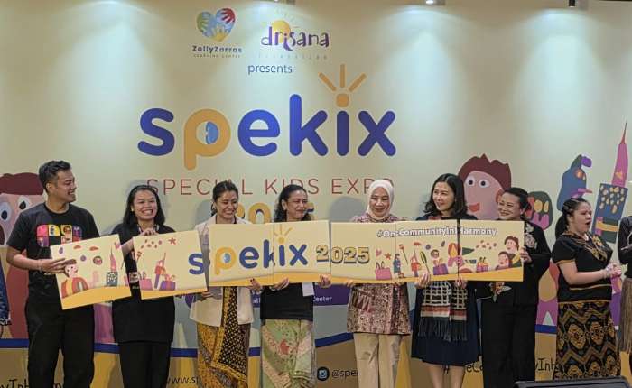 2025年特殊儿童展览会(Special Kids Expo,简称SPEKIX)是一项旨在为特殊需求儿童提供教育、启发与协作平台的活动,本届主题为“和谐共生的社群”。在2025年特殊儿童展览会中,“重度自闭症”(profound autism)议题成为焦点之一。约30%的自闭症谱系障碍者属于重度自闭症,这些个体在沟通、行动及生活自理等方面需要终身持续的专业支持。图为周六(10月4日),印尼妇女赋权和儿童保护部副部长Veronica Tan(右三)与多位贵宾在雅加达国际会议中心(JICC)举行的2025年特殊儿童展览会开幕式上合影留念。(商报/Hermawan摄)