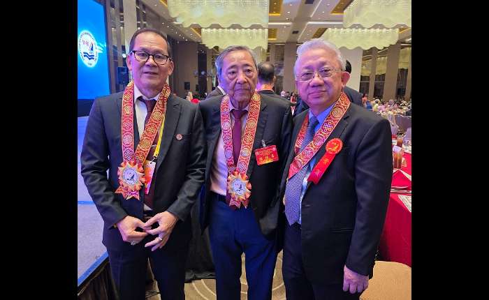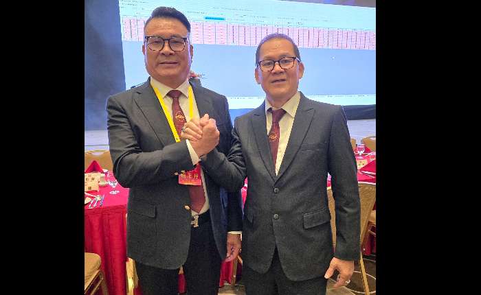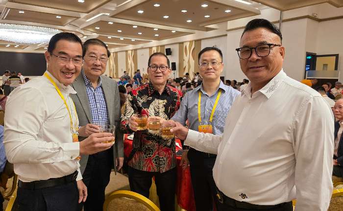 欧阳连财会长率团出席,对王松龄乡贤荣膺菲律宾晋江同乡总会与菲律宾晋江总商会理事长表示热烈祝贺,并祝愿菲律宾晋江同乡总会与菲律宾晋江总商会在新任理事长王松龄乡贤的英明带领下,以及全体理事的共同努力下,会务蒸蒸日上,百尺竿头、更进一步!(印尼晋江同乡会供稿/图)