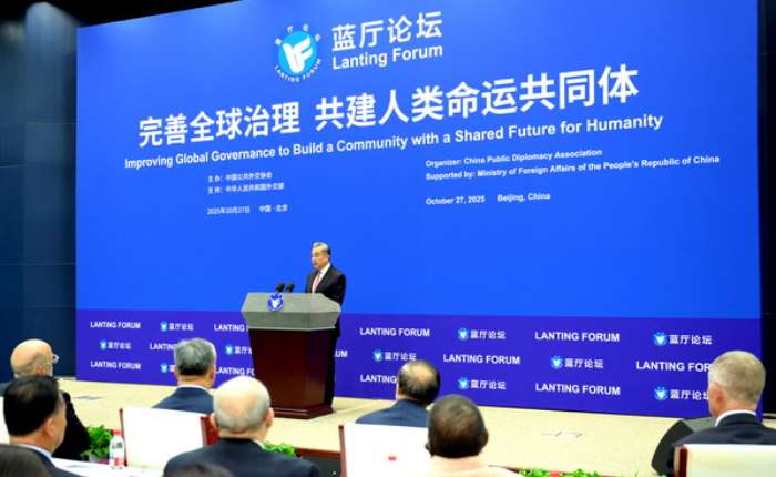 2025年10月27日,第二十三届蓝厅论坛在外交部举行,中共中央政治局委员、外交部长王毅出席并发表题为《落实全球治理倡议 共建人类命运共同体》的讲话。