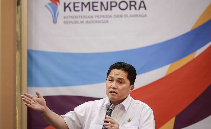 青年与体育部长Erick Thohir在雅加达青年与体育部办公室就印尼政府对国际奥委会(IOC)声明的回应举行了新闻发布会。