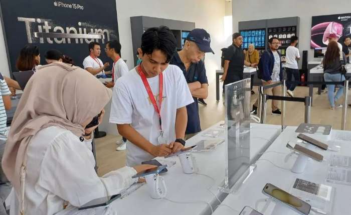 消费者在Erajaya Swasembada (ERAA)公司门店浏览商品。