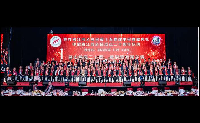 【本报周孙毅报道】世界晋江同乡总会第十五届(2025-2027)理事会就职典礼暨印尼晋江同乡会成立20周年庆典,于11月21日至23日,在雅加达盛大举行。大会以“晋心晋意二十载,爱拼爱赢家乡情”为主题,寓意印尼晋江乡亲二十年来同心同行,秉承“爱拼敢赢”的晋江精神,共谱晋江乡亲大家庭新篇章。