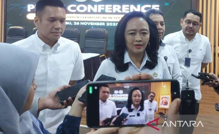 周三(11月26日),万丹省移民局长Felucia Sengky Ratna在丹格朗移民局向媒体发表声明。