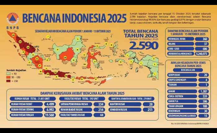 通常,当地方政府束手无策,即无法再处理其辖区内的灾情时,才会被定为国家灾难。此次洪水和泥石流虽仅发生在亚齐、北苏门答腊和西苏门答腊,但其造成的破坏性影响极为惨重。