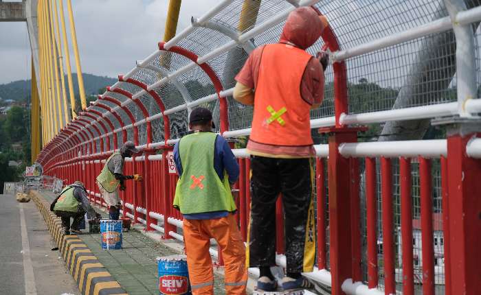 国家公路实施局(BPJN)在这座477米长的桥梁上安装了2.5米高的安全护栏,以防止坠落事故的发生。如所知,在今年,因坠落事故已造成三人死亡。(pl)