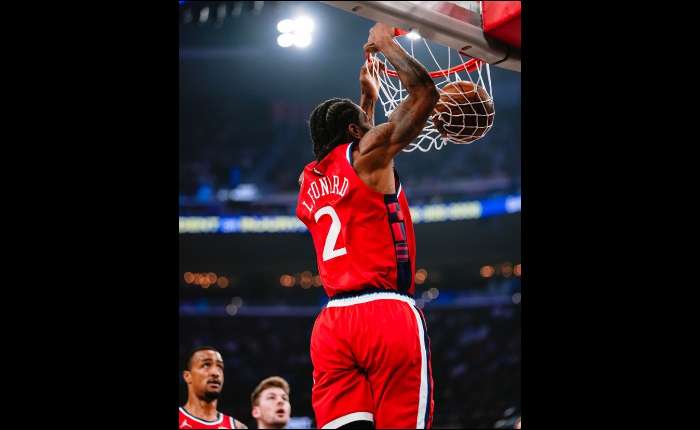 快船队首发阵容:哈登、邓恩、莱纳德、科林斯、大洛