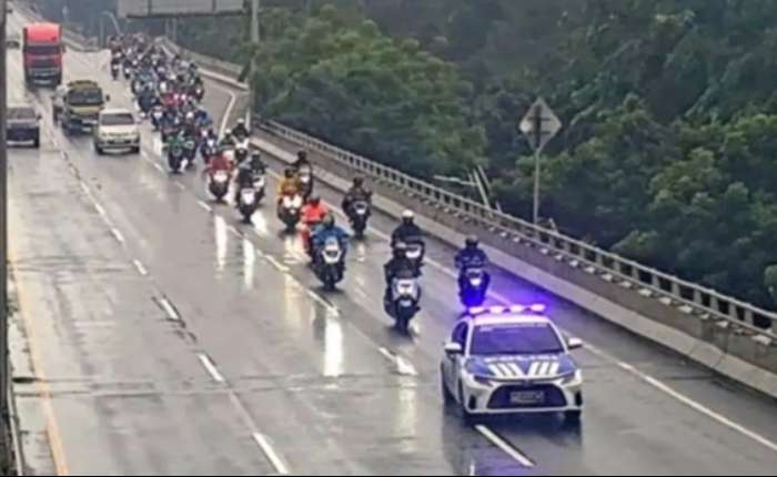 他还从普洛马斯收费站护送摩托车用户直至Kebon Bawang出口站。