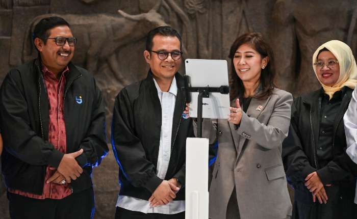 周二(1月27日),在雅加达Sarinah大厦举行的“微笑舒适以生物识别”(SEMANTIK)启用仪式上,通信和数字部长梅蒂亚.哈菲德(Meutya Hafid,右二),与副部长内扎尔.帕特里亚(Nezar Patria,左二)、秘书长伊斯迈尔(Ismail,左一),以及印尼电信运营商协会(ATSI)总主席迪安.西斯瓦里尼(Dian Siswarini,右一)的陪同下,进行了面部识别验证。政府已实施基于生物识别的手机号注册制度,该制度受《2026年第7号通信和数字部长条例》监管。