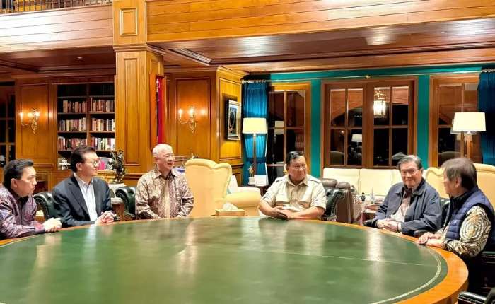 2026年2月10日晚上,印尼总统普拉博沃在西爪哇省茂物汉巴朗会见五位国内商业大亨。