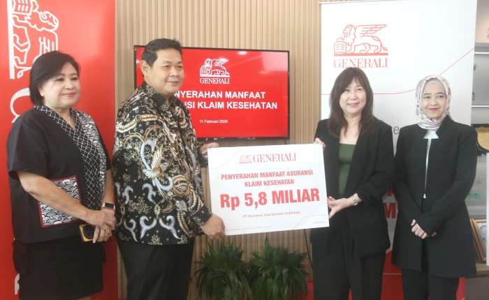 图为:于2月11日(周三)在雅加达,Generali Indonesia总监兼首席代表官Jutany Japit (右二)与运营集团负责人Suzwamela Zawawi(最右)向客户Bintoro(左二)交付健康保险理赔金,金融规划师Lilie(最左)陪同。2025年全年,Generali Indonesia累计支付保险理赔金额逾1.3万亿盾,覆盖超过27.3万宗理赔案件,涵盖健康保障、身故保障及重大疾病保障等。本次理赔支付体现了Generali Indonesia持续陪伴客户、共渡难关的承诺。(商报/Hermawan摄)