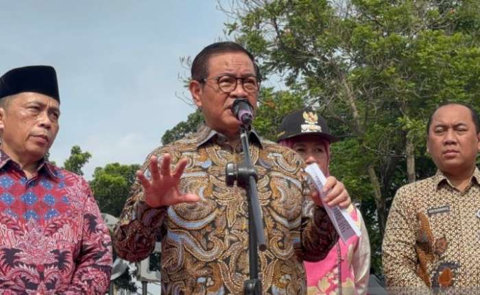 2026年2月12日,雅加达省长普拉莫诺在西雅加达肯邦安区正式启用马罗埃贾体育公园后接受采访。