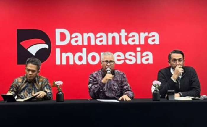2026年2月26日,印尼Danantara利益相关者管理董事总经理罗汉·哈法斯(中)在雅加达Danantara大厦举行的独家群访中回答记者提问。