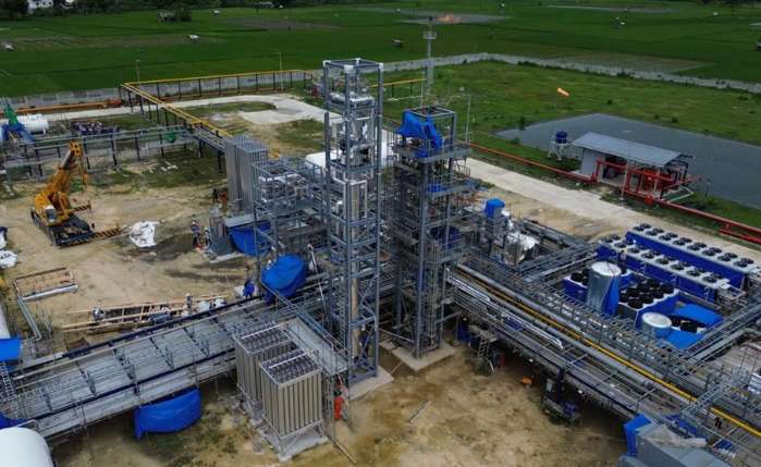Sumber Aneka Gas公司建设的一体化陆上液化天然气(OLNG)、液化石油气(LPG)及凝析油加工设施,为爪哇岛第二座LNG工厂,同时为当地规模最大的陆上LNG设施。图为项目建设现场。