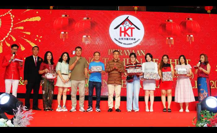 【本报周孙毅报道】3月1日,合家洞葛同乡会(Himpunan Keluarga Tungkal简称:HKT)在雅加达Season City Mall好地方餐厅举行成立4周年庆典暨马年春节团拜联欢。近千名乡亲踊跃出席,共叙乡情、同庆佳节,场面热烈温馨。