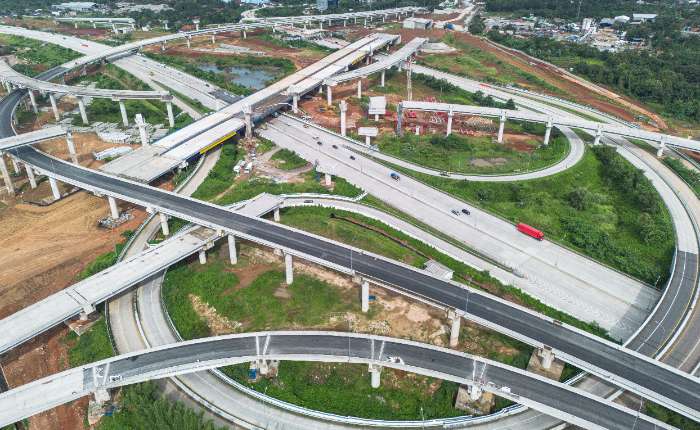 图为周四(3月5日),在西爪哇省勿加西市Setu镇,雅加达-芝坎佩南段第二条高速公路项目的航拍。公共工程部将在2026年开斋节返程高峰期间,对从西爪哇省葡禾加打(Purwakarta)县萨当(Sadang)区至雅加省达方向全长约52公里的高速公路开通运营,该路段将专门对一类车辆开放。