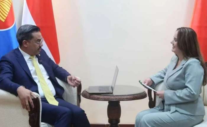 【本报讯】印尼中小微型企业(UMKM)部长马曼·阿卜杜拉赫曼近日作为嘉宾,接受了中国国际电视台新闻频道(CGTN)记者伊奥娜·戈莫伊的采访。其隶属于中国中央广播电视总台。此举被视为中国主流媒体对马曼部长访华行程,尤其是对印尼中小微企业在两国经济关系中作用的高度关注。