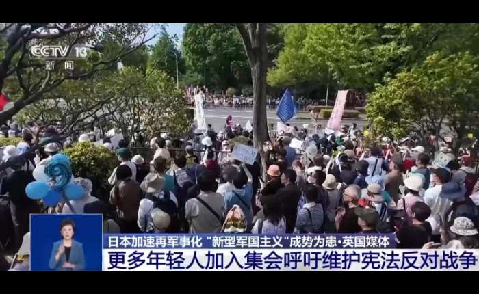 近期,日本政府推动修改和平宪法、解禁武器出口等做法引发国内不满。日本民众在东京等多地举行抗议集会。