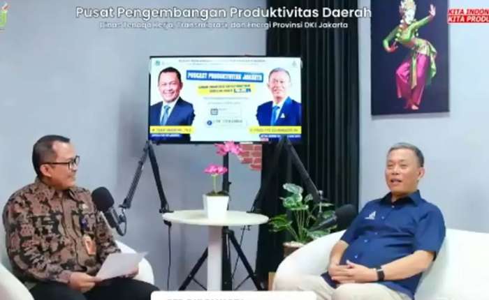 雅加达地方饮用水公司(PAM Jaya)监事会主席普拉塞蒂奥•埃迪•马苏迪在雅加达参加主题为“雅加达地方国有企业生产力与公共服务和谐共进:PAM JAYA”的播客节目。