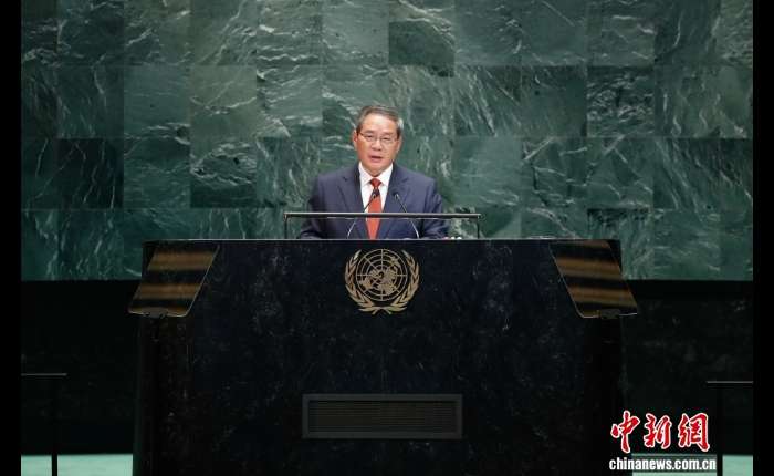 当地时间9月26日,中国国务院总理李强在纽约联合国总部出席第80届联合国大会一般性辩论并发表讲话。