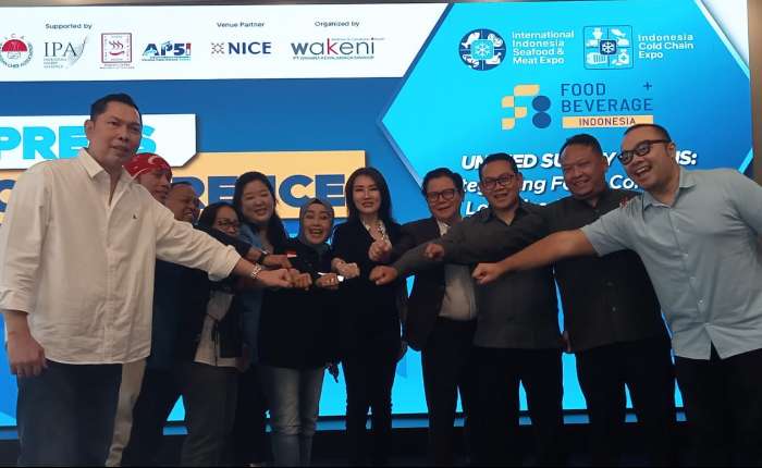 PT Wahana Kemalaniaga Makmur(WAKENI)将于2026年5月6日至9日在万丹省丹格朗县NICE PIK 2举办两场Feast Indonesia 2026展会。作为2026年系列综合行业展会的重要前奏,本次活动将汇聚食品、冷链、物流、酒店及旅游领域的主要企业家,构建一体化生态系统。图为周三(10月8日),印尼精品咖啡协会(SCAI)主席Gusti Laksamana、印尼物流企业家协会(PPLI)秘书Hesti Darmayanti、PT Wahana Kemalaniaga Makmur总监Sofianto Widjaja及其他行业协会代表在雅加达完成演讲后合影。(商报/Hermawan摄)