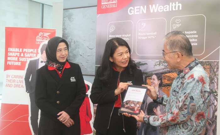 PT Asuransi Jiwa Generali Indonesia(忠利印尼人寿保险公司)推出新产品 GEN Wealth,这是一款兼具人寿保障及保期届满后返还保费功能的双重保障型人寿保险。人寿保险是家庭财务规划的重要组成部分,能够为潜在的人生风险提供稳健的财务保障。图为:忠利印尼总裁兼首席执行官 Rebecca Tan(中)在忠利印尼运营集团负责人 Suzwamela Zawawi(左)的陪同下,于 10 月 15 日(周三)在雅加达举行的发布会上,与首位 GEN Wealth 客户亲切交谈。(商报/Hermawan摄)