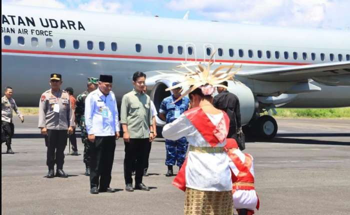 【本报讯】副总统吉布兰及其随行人员于周三(10月15日)抵达北马鲁古省摩罗泰岛(Pulau Morotai)县南摩罗泰(Morotai Selatan)镇瓦瓦马(Wawama)村的皮图(Pitu)机场,并将在该县进行工作访问。