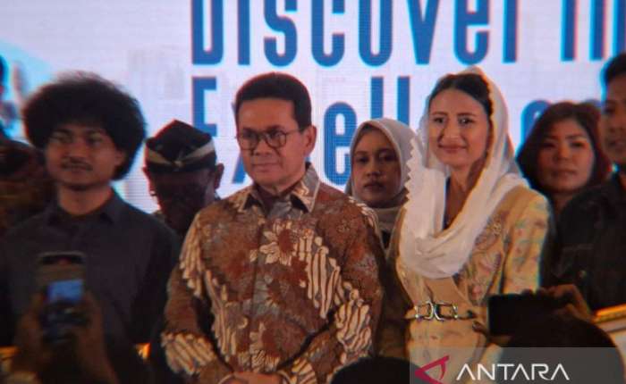 贸易部长布迪·桑托索与贸易副部长迪娅·罗若(Dyah Roro Esti Widya Putri)于10月19日在万丹省丹格朗县出席2025年印尼贸易博览会闭幕仪式。