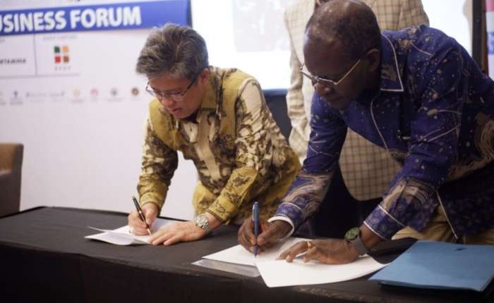 10月18日,在丹格朗县BSD印尼国际会展中心举行的第40届印尼贸易博览会期间,印尼—喀麦隆经贸论坛上签署合作协议。