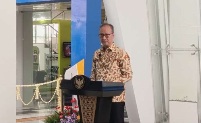 11月4日,工业部长阿古斯·古米旺·卡塔萨斯米塔在东爪省诗都阿佐出席尼制鞋业赋能中心(BPIPI)新楼启用仪式并发表讲话。