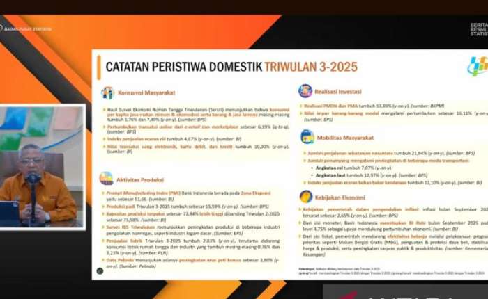 11月5日,中央统计局核算与统计分析副主任穆罕默德·埃迪·马哈穆德在雅加达召开的新闻发布会上展示统计数据画面。