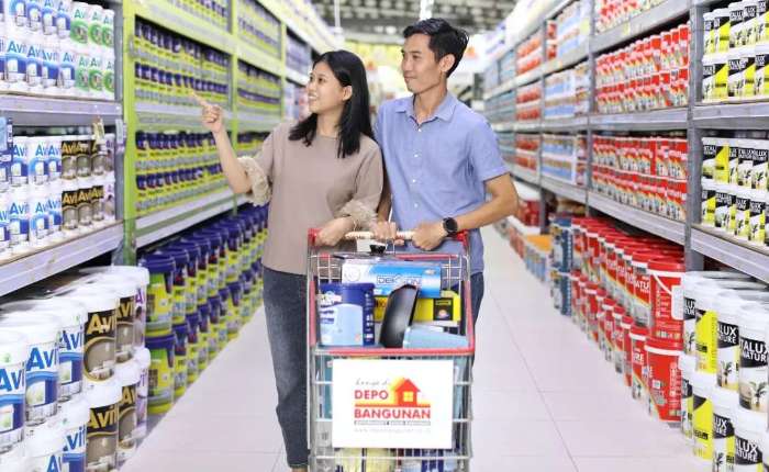 消费者在Caturkarda Depo Bangunan (DEPO) 建材零售店挑选油漆情景。
