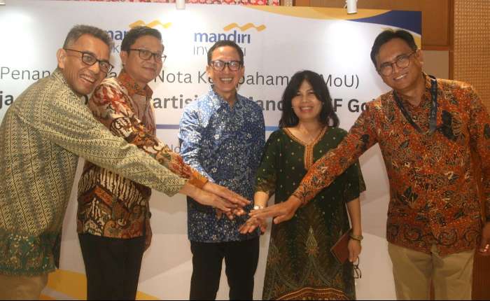 11月28日(周五),在雅加达,万自立投资公司(PT Mandiri Manajemen Investasi,简称 Mandiri Investasi)总监 Hardiyanto Pilia(左二)、总监 Ernawan R. Salimsyah(左一)、万自立证券(Mandiri Sekuritas)总裁 Oki Ramadhana(右三)、总监 Theodora VN Manik(右二)及首席技术官 Ady F Pangerang(右一)在签署黄金夏利亚ETF基金主经销商合作谅解备忘录(MoU)后握手留影。即将发行的黄金夏利亚ETF基金有望成为提升投资效率的创新解决方案,使投资者无需持有实物黄金即可布局黄金资产。该基金旨在追踪国内或全球黄金价格,具备交易便捷、单位成本较低等特点,适合零售及机构投资者参与。截至2025年11月28日,万自立投资公司旗下各类投资产品的合并管理资产规模已突破70万亿盾,并预计将在2025年底继续保持增长势头。(商报/Hermawan摄)