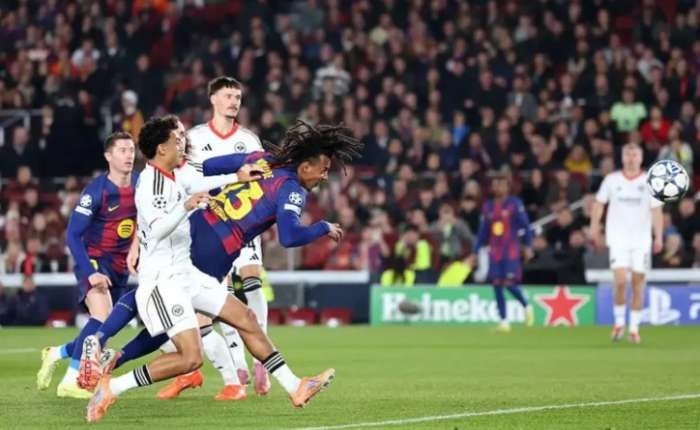 第52分钟,左路战术角球快发,亚马尔传到禁区孔德头球破门,巴萨2-1法兰克福。