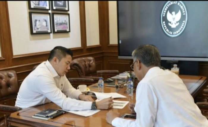 周二(12月23日),内阁秘书泰迪在雅加达内阁秘书处办公室与公共工程部长多迪.汉戈多就苏门答腊灾后基础设施修复的成就进行了对话。